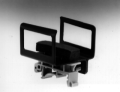 2. Using the selected length machine screws and the 4 nuts assemble the two brackets together as shown in the following picture. Leave the screws loose. Peel off the protective covering from the foam strip and place the strip on the bracket as shown in the picture. The foam strip should cover the heads of the sheet metal screws that secure the plastic foot.