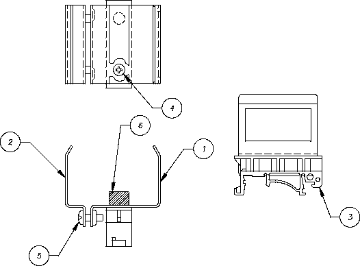 1. Using the sheet metal screws fasten the plastic DIN rail foot to the left, long, bracket as shown in the picture. Do not over tighten these screws.
