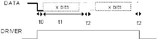 sets off the driver immediately ("t0"), remaining active until a half-bit following the last stop bit. If a