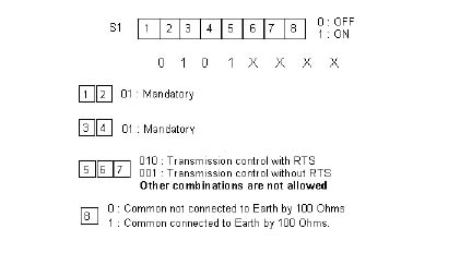 transmission parameters indicated by the user via the S1 DIP-switch (refer to section 4.3,