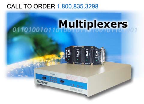 Telebyte’s Multiplexers employ techniques that allow a number of simultaneous transmissions over a single circuit. Many can be used to interface between two signal types such as RS-232 and RS-422. Telebyte Multiplexers include RS-232 to RS-422 full-duplex interface converters, RS-232 to current-loop converters, V.35 line driver eliminators and more. Features include four and eight-port for copper, fiber optics and port sharing. |